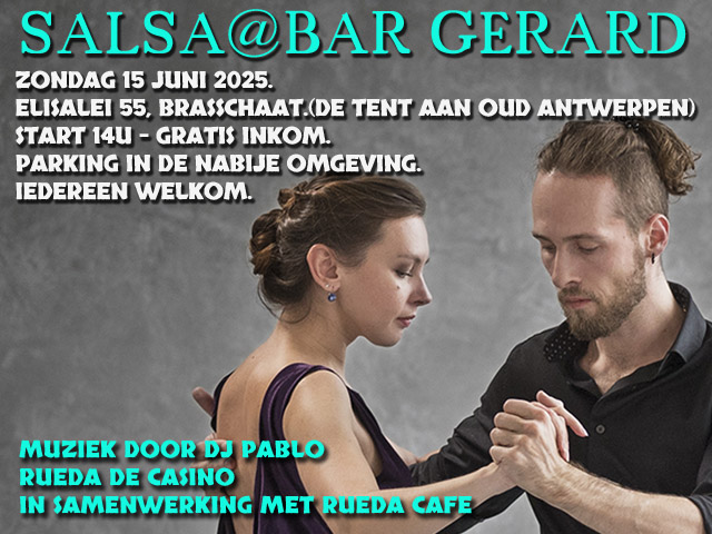 15jun2:00 pm7:00 pmSalsa, Bar Gerard2:00 pm - 7:00 pm Oud AntwerpenCityBrasschaatCountryBelgium Event Organized ByPaul Vande Casteele 0 Add to wishlist